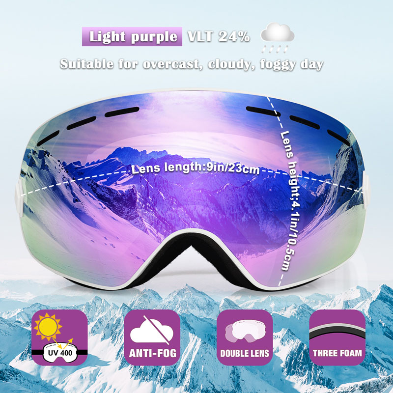 Gömb alakú kettős revo lencsék: A professzionális felnőtt sí szemüvegek keret nélküli formatervezésűek. A síszemüveg lencséje nagyon tiszta. A téli sportszemüvegek széles és tiszta látást kapnak, láthatja a gyönyörű hóhelyzetet anélkül, hogy blokkolná a nézetét, amikor snowboardozást végez. A teljes Revo bevonat sokkal hűvösebbé és karcos bizonyítékot biztosít.