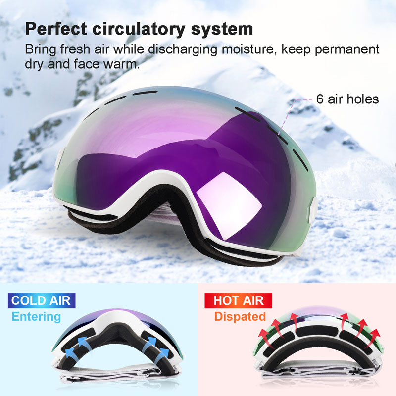 A kettős rétegű lencséje, hogy megakadályozzák a ködösséget a síelésben vagy a snowboardozásban. A sí -szemüvegnek van egy intelligens levegőcsere -rendszere is, hogy a szemüvegben megfelelő hőmérsékletet tartson, hogy megakadályozza a ködöt.